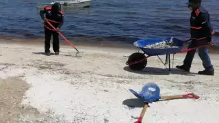 Mantienen tareas de limpieza y vigilancia en zona de marea roja en Yucatán