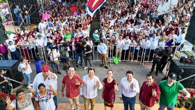 Al respaldar al precandidato único a la gubernatura de Yucatán, Joaquín Huacho Díaz Mena, “un hombre de territorio, no de escritorio”, durante una reunión pública con simpatizantes y militantes en la plaza principal de Kanasín, la aspirante presidencial destacó que “el crecimiento puede ser para todos y no solo para unos cuantos”. Señaló que esto se ha evidenciado en los cinco años de gobierno del fundador del movimiento, Andrés Manuel López Obrador.