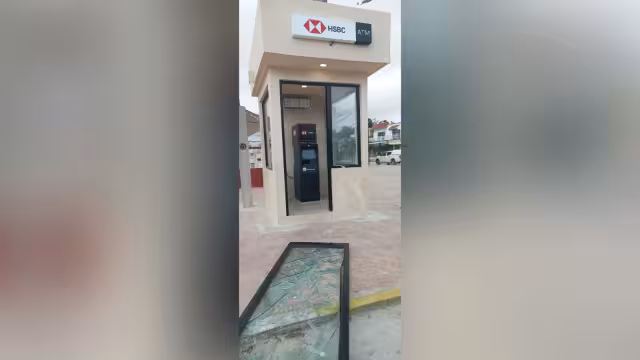 Tras haberse programado la llegada del frente frío número 31 a la península de Yucatán, luego de los primeros minutos de comenzarse a sentir las rachas de viento en el puerto de La Cuyo, la puerta de cristal del cajero automático del banco HSB, resulto con daños pues se desprendió de su base y cayo quedando reventado todo el vidrio.