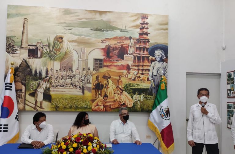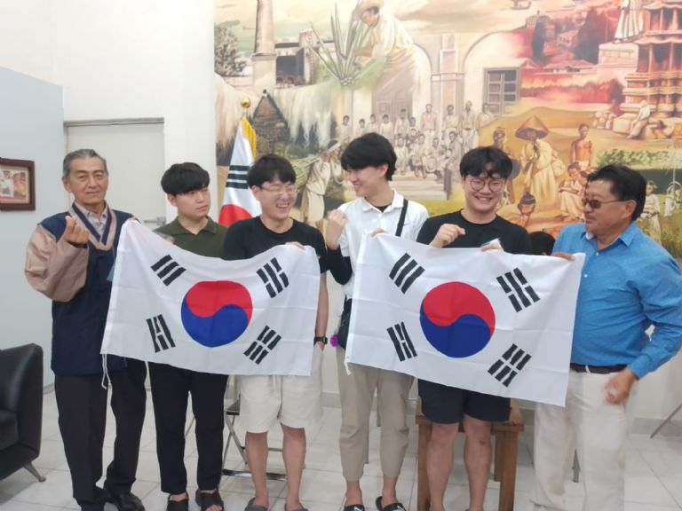 Destacó la presencia de 4 estudiantes de Corea, quienes vinieron a Yucatán, precisamente para saber más de la historia de migración de sus compatriotas. Se trató de Kim Juseop, Park Ki Yeol, Seong Chong Ki y Wong Jung Ho, de la Universidad Nacional de Pukyong.