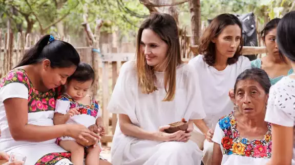 La actriz de Hollywood Angelina Jolie visitó el estado de Yucatán, donde convivió con mujeres mayas, las cales forma parte de La Fundación Selva Maya y Maroma & Belmond.