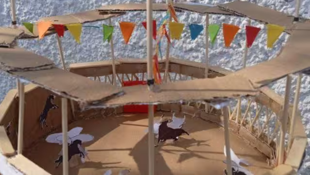 Utilizando materiales como cartón y palitos, fue como fueron dándole la forma del ruedo artesanal que se acostumbra realizar en las ferias patronales del interior de los municipios del Estado: “Mi cuñado ayudó al niño a elaborarlo, fue muy divertido porque la idea que Ángel tenía se pudo hacer realidad”.