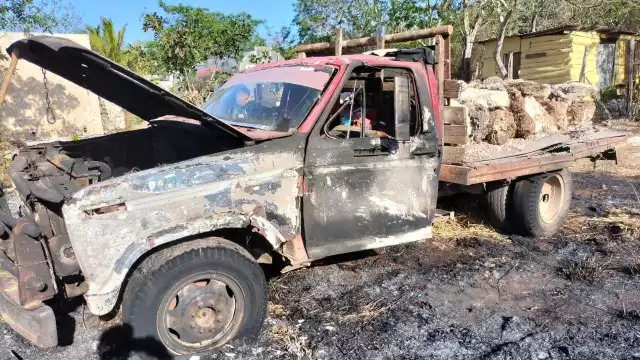 El reporte del incendio de un vehículo sobre la calle 79 X 40 de la colonia Santo Domingo movilizo a unidades de la policía municipal los cuales al llegar no los ubicaron, sin embargo, al peinar la zona, fue en terrenos del periférico de la calle 22 donde localizaron un incendio de maleza y al llegar, se percataron de que además de la maleza se había quemado parte de una camioneta de tres toneladas con placas de circulación YP-0226-7 del estado de Yucatán.