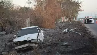 Abuelito pierde el control de su auto y causa destrozos en la carretera Mérida-Progreso