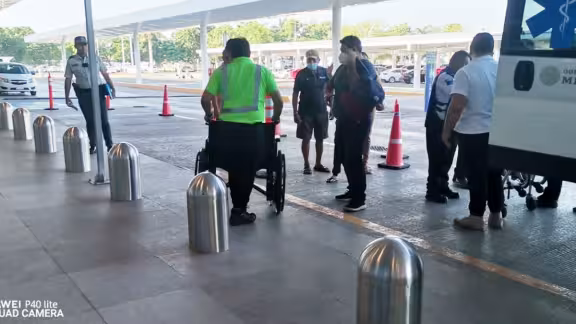 Personal de la empresa privada que ofrece el servicio de silla de ruedas tuvo que intervenir para trasladar a la pequeña Luciana, que fue llevada de urgencia a una clínica de la Ciudad de México, debido a que el personal de VivaAerobus no contaba con este tipo de aparato en el aeropuerto de Mérida.