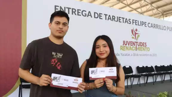 En Yucatán avanza la entrega de las tarjetas "Felipe Carrillo Puerto" para estudiantes universitarios que recibirán la Beca Juventudes Renacimiento.