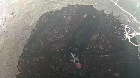 Rescatan a un perro luego de caer en un pozo de ocho metros de profundidad en Tizimín