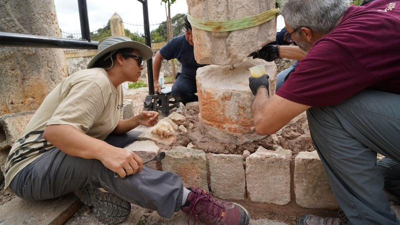 El proceso de traslado, restauración y montaje se realizó los días 13 y 14 de noviembre en coordinación con las áreas de Conservación-Restauración, Arqueología y Museografía del Centro INAH y el Museo Regional de Antropología de Yucatán (MRAY) Palacio Cantón, con el personal, las herramientas y los materiales especializados para realizar esta delicada maniobra.