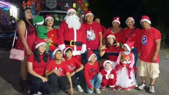 Familia Cauich Couoh cumple su promesa al Niño Dios con regalos a niños