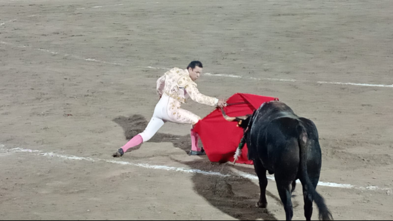 Sergio Garza, con el toro Cariñoso, aprovechó la embestida por el lado derecho, pero falló tres veces al matar y recurrió al descabello, recibiendo aplausos del respetable.