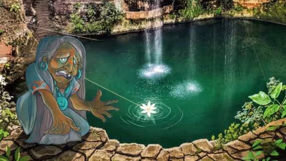 Cuenta la leyenda que la hechicera, rota por la pérdida, lanzó una flor blanca al agua y maldijo el cenote, decretando que cada año, cuando el agua se tornara oscura, cobraría una vida como sacrificio por aquel amor prohibido. Desde entonces, el Cenote Zací no solo es un atractivo turístico, sino también un sitio cargado de historia, pasión y misterio.