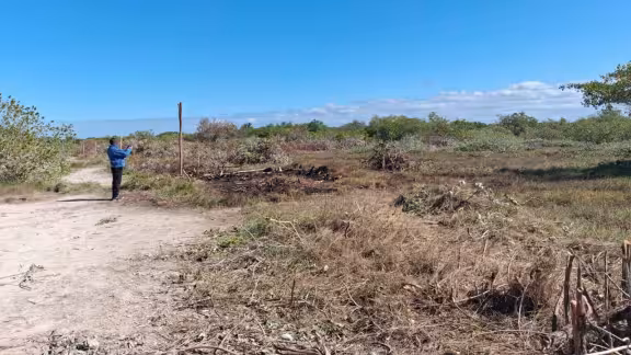 Además, el predio ya había sido delimitado para su división en siete lotes, mediante la colocación de postes de madera y cinta plástica de color amarillo. En al menos dos de estos lotes se localizaron letreros con nombres propios, lo que sugiere la asignación anticipada de espacios a posibles ocupantes, un paso previo a la consolidación de asentamientos humanos irregulares en una zona ambientalmente protegida.