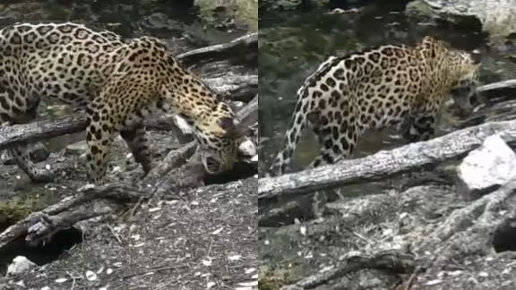 La grabación fue lograda por una cámara trampa, ubicada a escasos metros de una aguada. A diferencia de otros registros similares, en donde se observan ejemplares con mayor masa muscular, este individuo destaca por su notable delgadez.