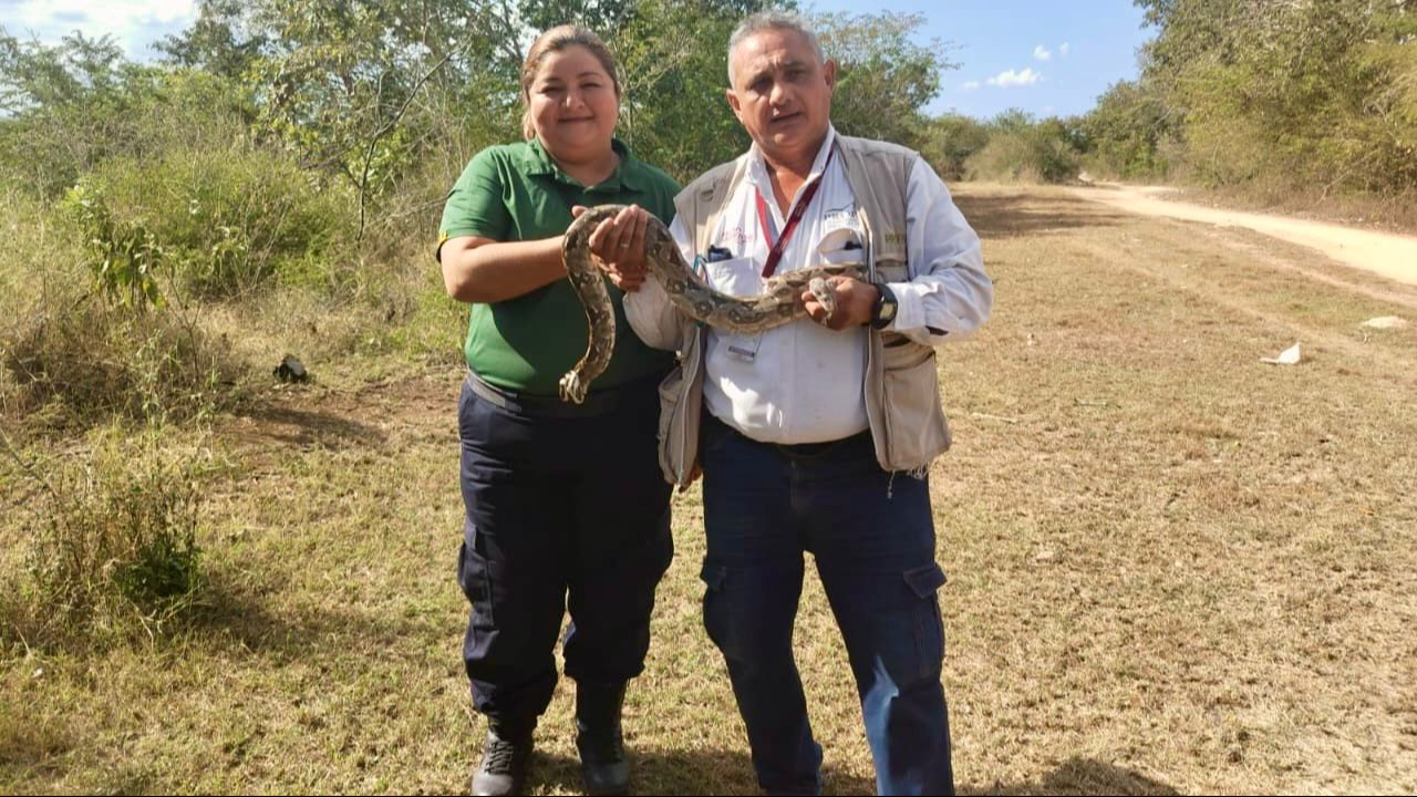 Rescatan y liberan a un tejón, águila y boa en distintos puntos de Kanasín