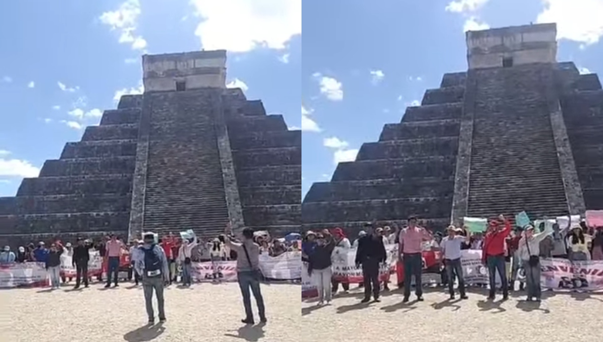 Maestros del CNTE en Yucatán realizan protesta en Chichén Itzá por el paro laboral de 72 horas