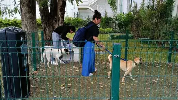 Como hemos informado, en el jardín del sector norte de la terminal aérea de la capital yucateca se construyó un área donde los canes que llegan algo nerviosos o inquietos puedan incluso comer o beber agua, antes de pasar a la sala de última espera, cuando se trata de perros de compañía.