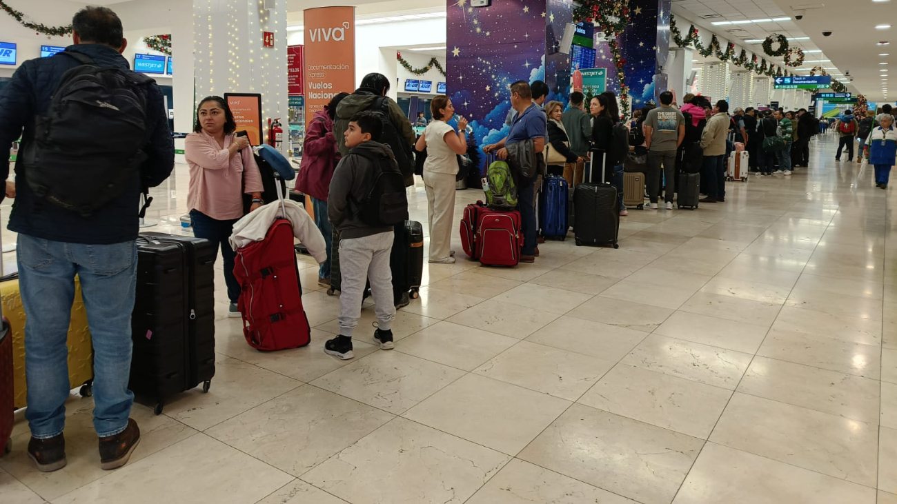 El mismo fenómeno se registró en el mostrador de Viva, ahí se juntaron los pasajeros a La Habana, Guadalajara y CDMX, donde también se controló la situación sin mayores inconvenientes.
