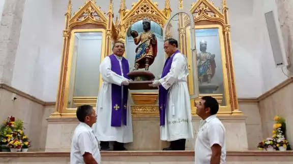 Se realizó la bajada extraordinaria de las imágenes de los Santos Patronos, Gaspar, Melchor y Baltazar con motivo de las vísperas de la declaratoria de la parroquia de los Santos Reyes como Santuario Diocesano.