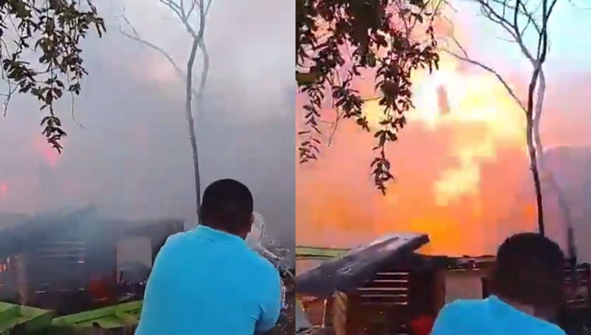 En un video que circula en redes sociales, se aprecia el momento en que algunas personas intentan controlar el siniestro con cubetas de agua, sin embargo, la explosión de un cilindro provoca que se replieguen para ponerse a salvo.