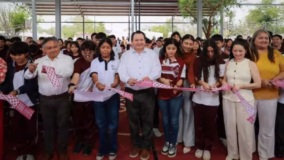Como parte de su compromiso con el fortalecimiento de la educación en la entidad y la generación de mayores oportunidades para las juventudes, el Gobernador entregó estas obras, que también benefician al Centro de Estudios de Bachillerato de Dzununcán, que funciona en las instalaciones de este plantel.