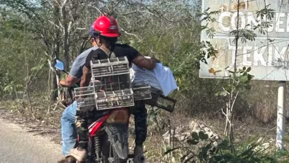 Una vez más, el usuario Rafael Jiménez Vázquez, evidenció a los llamados tramperos, operando con impunidad. Mediante redes sociales, compartió una imagen en la que se observa a dos personas trasladándose en una motocicleta, mientras sostienen dos jaulas.