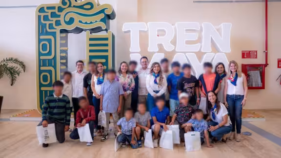 Quince niños vivieron por primera vez la experiencia de abordar el Tren Maya como parte de una visita organizada en coordinación con Fundación Palace.