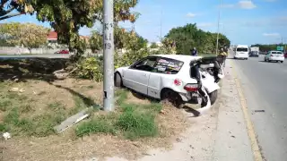Conductor destroza su auto al chocar con un árbol en Mérida