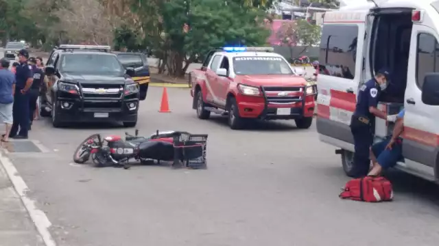 La motocicleta, de color rojo, con matrícula Y6SR2, transitaba de oriente a poniente sobre la calle 77 con preferencia de paso y el Chevrolet Aveo, de color negro, con placas USM-850-D de Quintana Roo, circulaba de sur a norte y al invadir la arteria con preferencia golpeó levemente a la motocicleta, suficiente para que el conductor perdiera el equilibrio y cayera al pavimento, la moto se arrastró cerca de 8 metros y el motociclista y su cónyuge salieron despedidos con las consecuencias descritas.