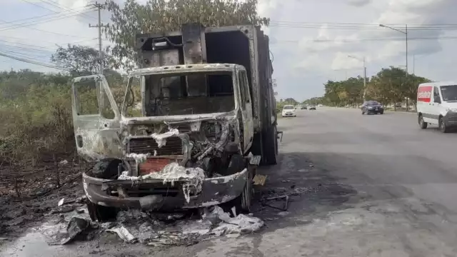 Un camión recolector de basura de la empresa servilimpia se quemó en  el kilómetro  48 del periférico de Mérida.