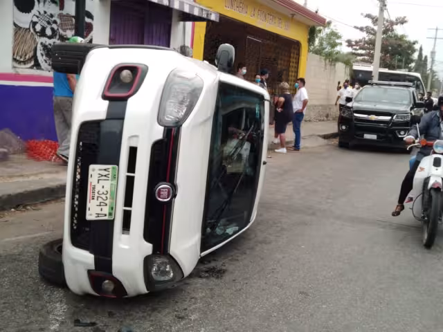 Automóvil vuelca con tres personas en su interior en el centro de Mérida