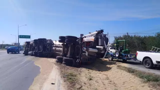 Esta mañana se registró un accidente a la altura del kilómetro 47 del Periférico de Mérida, en donde un tractocamión que jalaba una tolva cargada con más de 20 toneladas de alimento para cerdos, transitaba por el arroyo y exterior se salió de la carretera. Ante el incidente el operador intentó regresar pero se volcó.