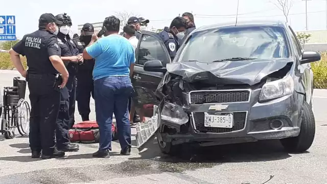 Dos personas que viajaban en el interior del Aveo negro con placas YWJ-385-D, manejado por el hunucmense Félix Alejandro, resultaron con algunas lesiones.