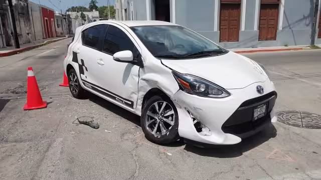 El Toyota tipo Camry, con matrícula ZCC-634-B, era conducido de norte a sur sobre la calle 50 por Myrna C.P.P., quien al llegar a la intersección con la calle 55 siguió de largo y chocó contra un Nissan Versa, con placas de circulación YWV-114-D, manejado de poniente a oriente por José H.O.C., por la fuerza del impacto la conductora del Camry perdió el control del vehículo, se subió a la banqueta y se estrelló contra la fachada de una casona abandonada ubicada en la esquina.