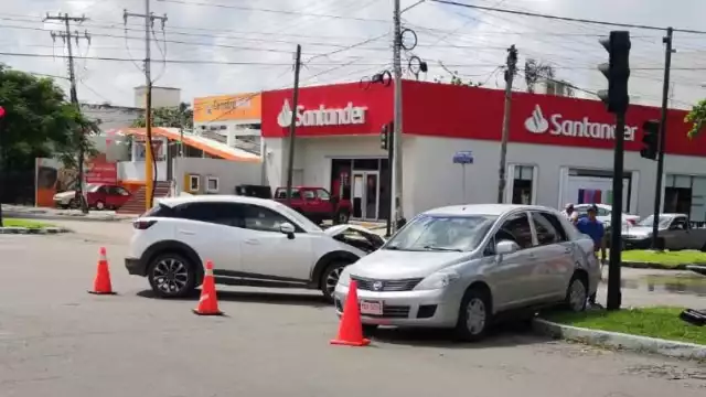 La conductora de una camioneta no respetó la luz roja del semáforo y colisionó a un automóvil que pasaba con preferencia de paso en el cruce de las avenidas Alemán y Circuito Colonias, en la colonia Miguel Alemán, en Mérida, la mañana de este sábado.