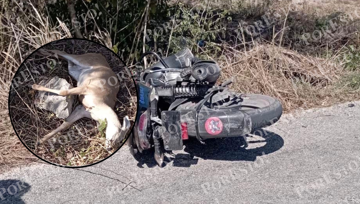 Un accidente de tránsito se registró en la carretera Nolo- Yaxkukul cuando el conductor de una motocicleta que circulaba en dirección de Norte a Sur cuando de pronto cruzó un venado y fue impactado por el motociclista, dejando como saldo de dos personas lesionadas y el venado muerto por el fuerte impacto
