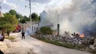 Cenobio Cen, responsable del lugar, señaló que el siniestro inició en los terrenos de la exmaquiladora, a la entrada del poblado