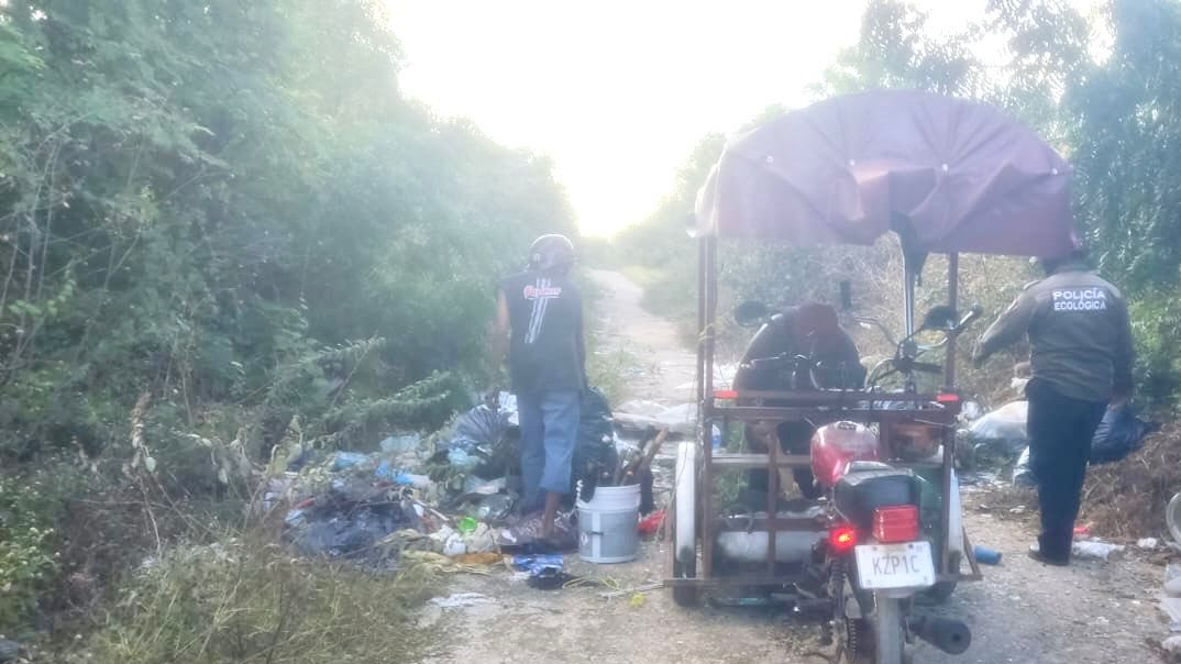 La Policía Ecológica de Kanasín detuvo a dos hombres por tirar bolsas de basura en zonas de monte.