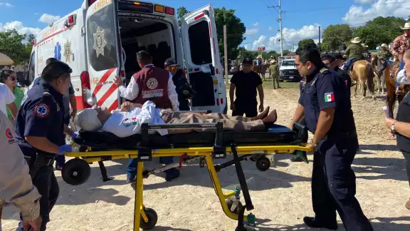 Al lugar acudió la ambulancia Y-62 de la Secretaría de Seguridad Pública (SSP), cuyos paramédicos brindaron atención prehospitalaria al lesionado. Debido a que el hombre presentaba un fuerte dolor en la espalda que le impedía moverse, fue colocado en una camilla y trasladado a un hospital de la ciudad de Tizimín para su valoración médica.