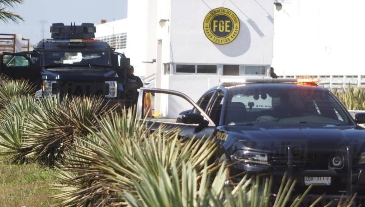 El despliegue policiaco se mantiene en el edificio de la FGE cerca del Periférico de Mérida, con un cerco a cargo de la Secretaría de Seguridad Pública (SSP).
