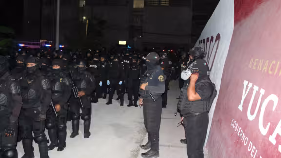 La diligencia, realizada con carácter sorpresivo, contó con un amplio estado de fuerza integrado por agentes estatales, investigadores, unidad canina K-9, así como personal paramédico y jurídico. El operativo fue reforzado con seguridad perimetral y apoyo táctico de la Secretaría de Marina, la Secretaría de la Defensa Nacional y la Guardia Nacional.