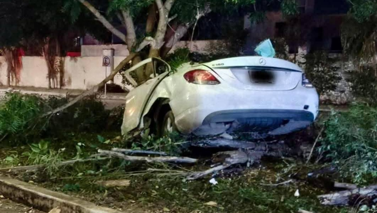 La madrugada de este martes, una tragedia sacudió el fraccionamiento Gran Santa Fe de Mérida cuando el conductor de un Mercedes Benz perdió la vida tras un brutal impacto contra un árbol y un poste de alumbrado público.