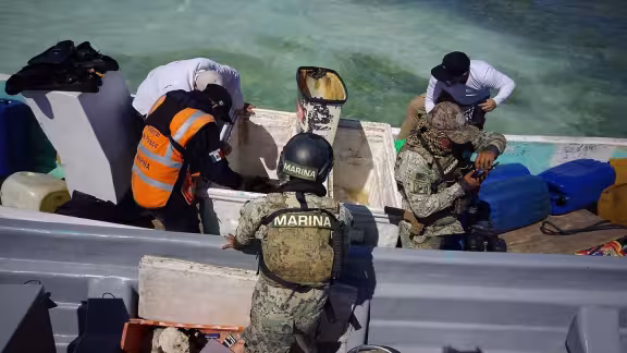 La acción se realizó durante recorridos de inspección, seguridad y vigilancia en el Parque Nacional Arrecife Alacranes, donde personal naval a bordo de una patrulla interceptora y una embarcación menor detectó una lancha sin nombre ni matrícula visible, en la que viajaban tres tripulantes.